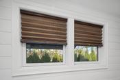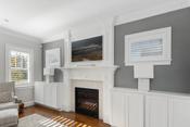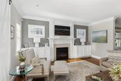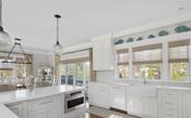 Interior Details added custom drapes, woven shades, and plantation shutters to this transitional coastal home.